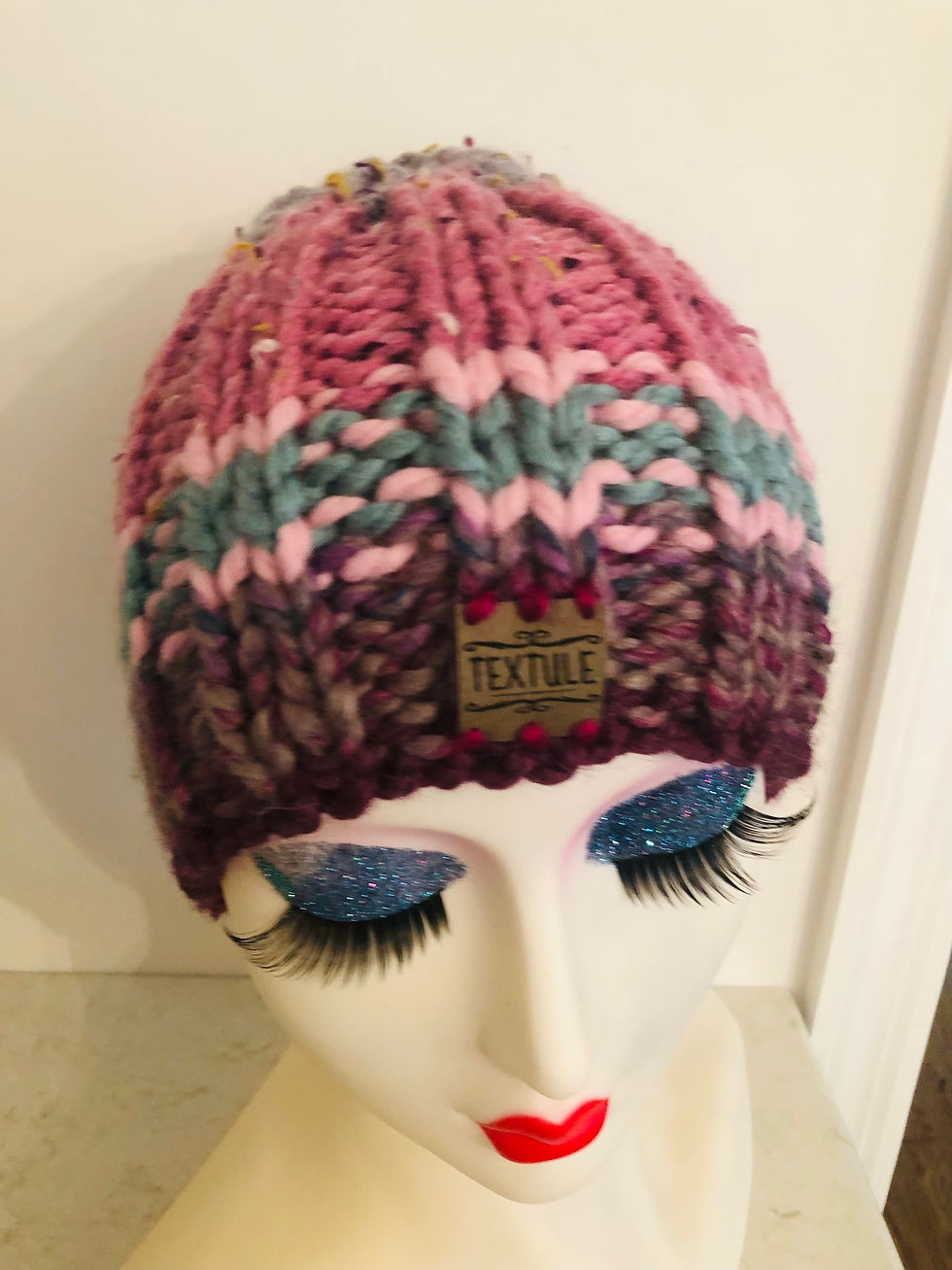 LOVE PINK COLORS BEANIE HANDMADE HAT